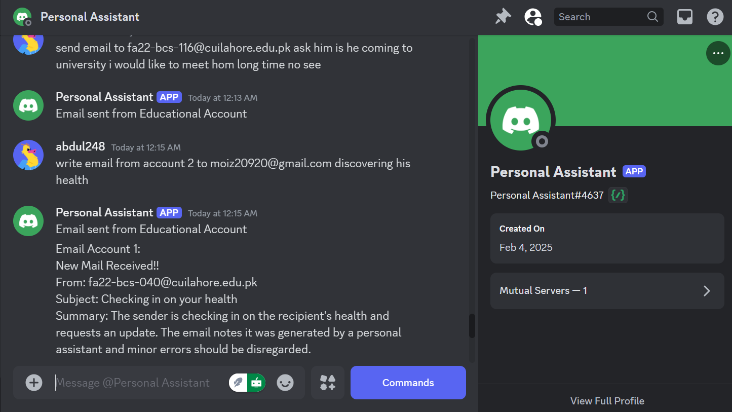 A smart Discord-based assistant designed to streamline productivity and daily management. It automates email handling, tracks income and expenses, and generates monthly income statements. The assistant also sends daily LeetCode challenges to keep coding skills sharp and provides task reminders for events, deadlines, and birthdays.